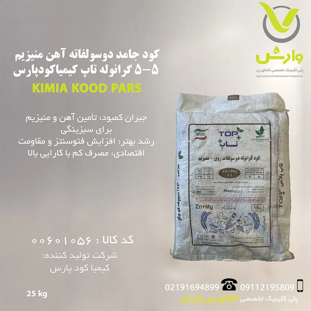 کود جامد دوسولفاته آهن منیزیم 5-5 گرانوله تاپ کیمیاکودپارس پاکت 25 کیلویی عدد