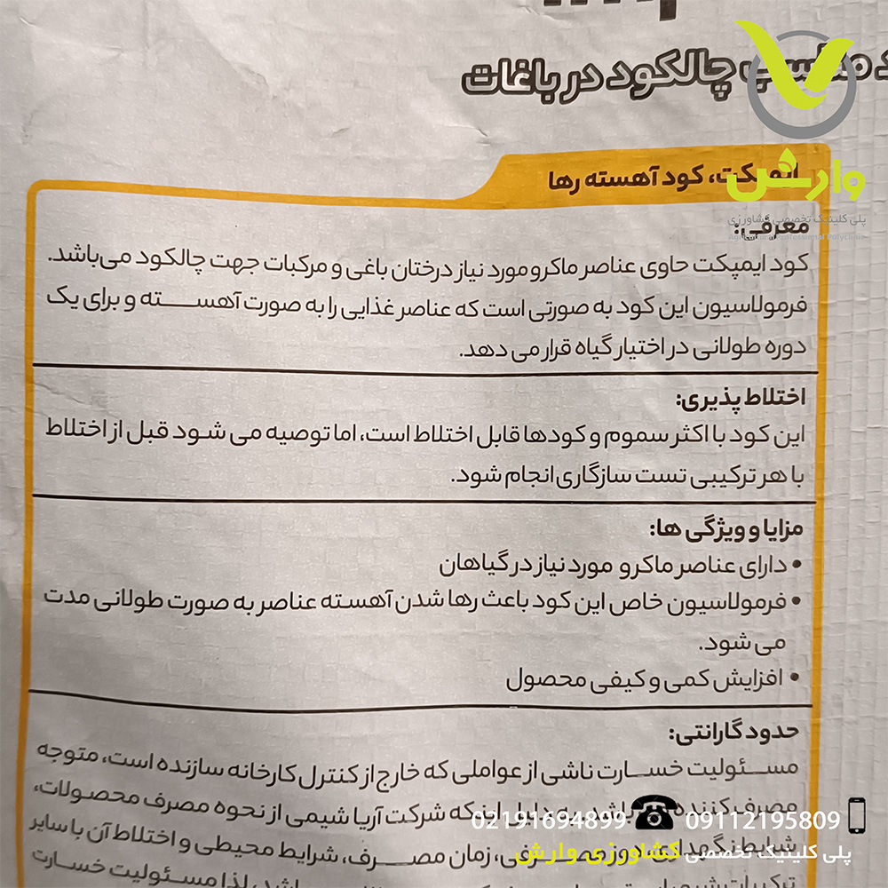 این محصول بهطور ویژه برای استفاده در باغات طراحی شده و میتواند در برنامه تغذیه پایه درختان میوه نقش مؤثری داشته باشد.